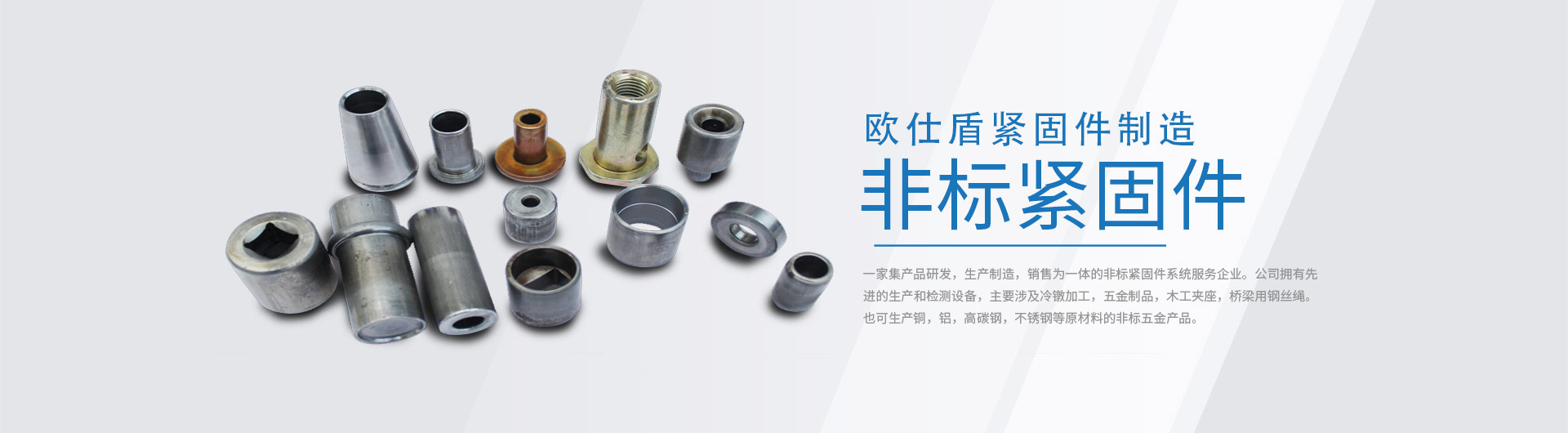 宜興市歐仕盾緊固件制造有限公司坐落在太湖之濱——無錫宜興。是一家集產(chǎn)品研發(fā),生產(chǎn)制造,銷售為一體的非標(biāo)緊固件系統(tǒng)服務(wù)企業(yè)。公司擁有 的生產(chǎn)和檢測設(shè)備,主要涉及冷鐓加工,五金制品。也可生產(chǎn)銅,鋁,高碳鋼,不銹鋼等原材料的非標(biāo)五金產(chǎn)品。公司創(chuàng)始人憑借著對技術(shù)的狂熱追求以及數(shù)十年對產(chǎn)品工藝的積累,在五金制造行業(yè)占據(jù)了一席之地;對于客戶的需求高、中、低端批量五金件有著特有的加工工藝及成本管控,為客戶做到真正的成本節(jié)約;可對于客戶新產(chǎn)品的研發(fā)作出及時的配合調(diào)整!我的優(yōu)勢——您可以直接和技術(shù)迅速準(zhǔn)確的我們描述您對零件的需要,我們的精準(zhǔn)服務(wù)將給您帶來驚喜!